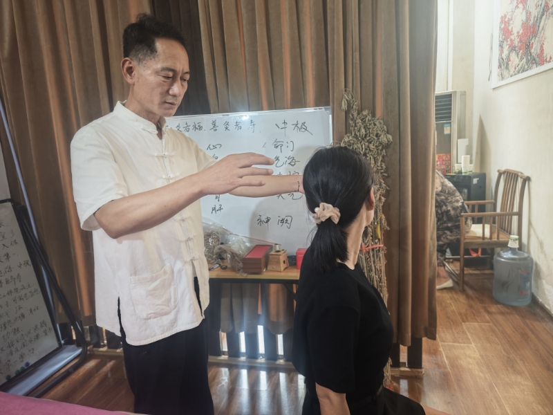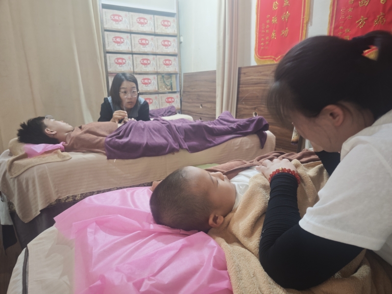 活动期间,祁传义老师以艾草的特性及药用价值为切入点,结合中医理论,系统讲解了艾灸的核心穴位定位、施灸操作规范、禁忌事项等专业知识,帮助参与家庭建立对传统艾灸技艺的科学认知。理论讲解结束后,祁传义老师根据现场家长的身体状况,逐一提供针对性推拿指导,示范中医养生技法的实践应用。