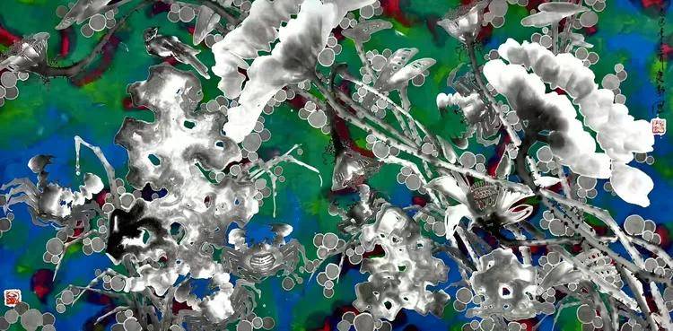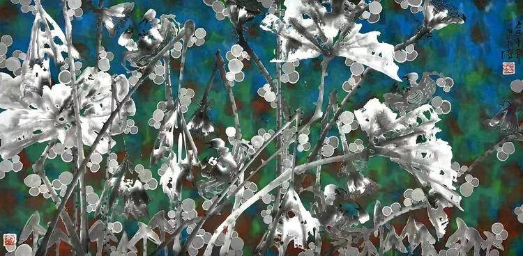 徐建新艺术世界的核心意向“荷”或许最能体现其艺术精神从荷风墨韵蟹满枝到荷塘双鸟再到残荷秋韵,荷花在他的笔下既是传统文人精神的载体又是形式实验的媒介更是生命哲学的隐喻,对同一主题的多维度探索形成了其艺术创作的复调结构。