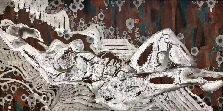 《形色-窑变》人体写生系列 纸本水墨设色 69cm高X138cm宽 2020年7月创作 俄罗斯列宾美术学院为艺术家颁发收藏证书