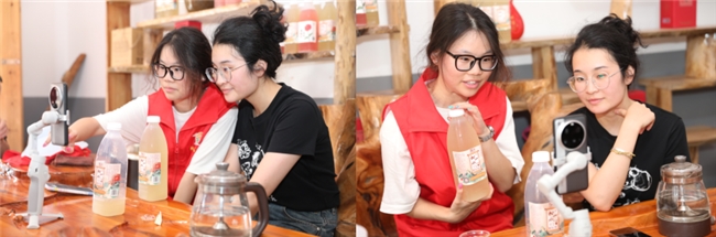 午后的直播带货环节,将实践活动推向高潮。同学们在油溪桥村的酒庄搭起直播间,身前的展台上摆满了松山年份酒、洛神花酒等系列产品。“家人们看过来!这瓶酒里装着新化的山泉水和老手艺,点击下方链接就能把非遗带回家!”柳同学手持产品,用生动的讲解揭开松山水酒的故事,如今“企业+合作社+农户”的产业模式,每一段历史都让屏幕前的网友直呼“涨知识”。