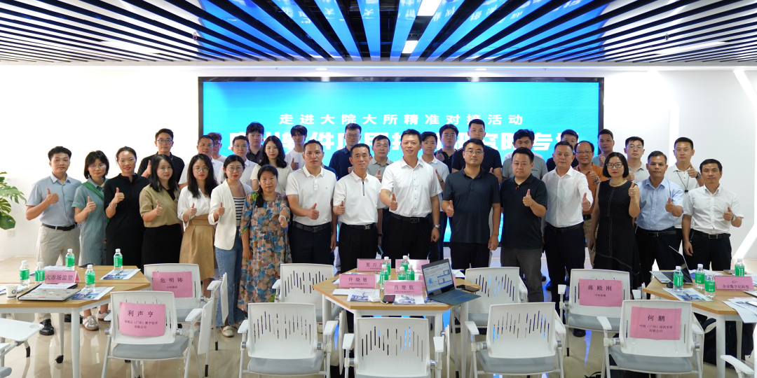 为强化科技创新与产业创新深度融合发展,推动科技成果高效转化,搭建创新资源精准对接平台,8月12日,由广州市科技局指导,广州市新型研发机构协同创新联盟(以下简称“广州新型研发机构联盟”)、大湾区科技创新服务中心、广州软件应用技术研究院(以下简称“广州软件院”)联合主办的“走进大院大所成果转化精准对接活动——广州软件应用技术研究院专场”成功在广州南沙举办。