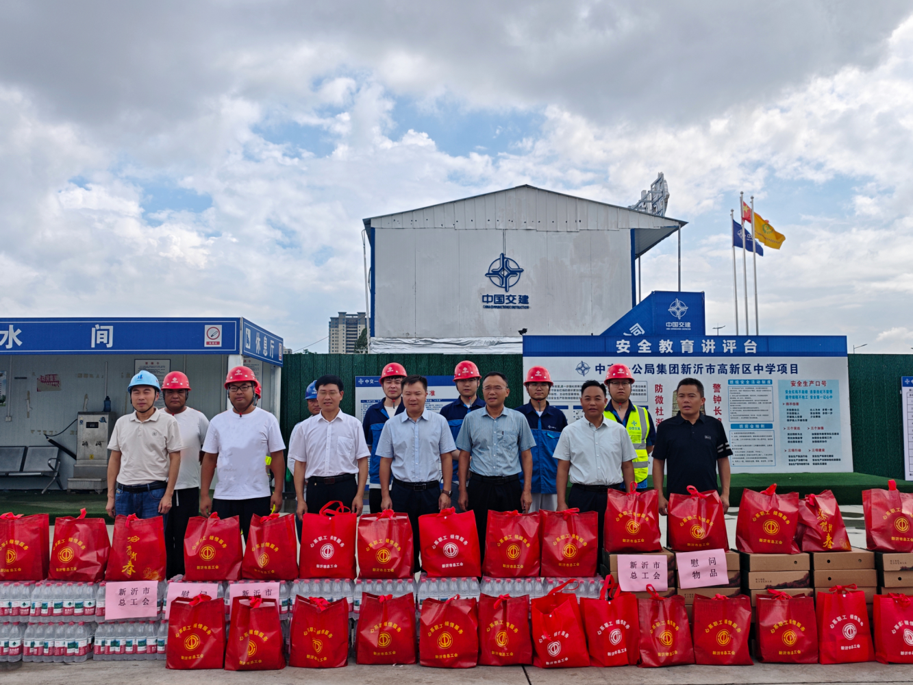 为切实做好高温天气下职工防暑降温工作,保障一线劳动者的健康权益,近日,新沂市总工会党组书记、副主席陈龙,副主席王庆蒙,劳动和经济工作部部长晁会平,新沂市教育工会主席王兆友,副主席高峰到中交一公局集团有限公司徐州市新沂市高新区中学工程项目开展“夏送清凉”慰问活动,为奋战在高温一线的劳动者送去防暑降温物资和工会组织的关怀。
