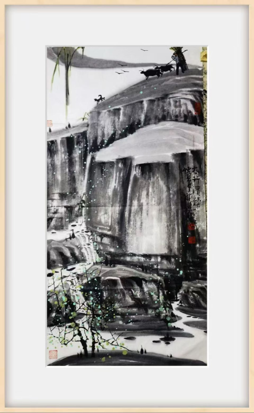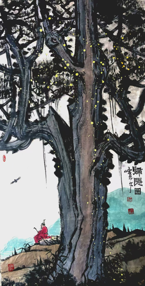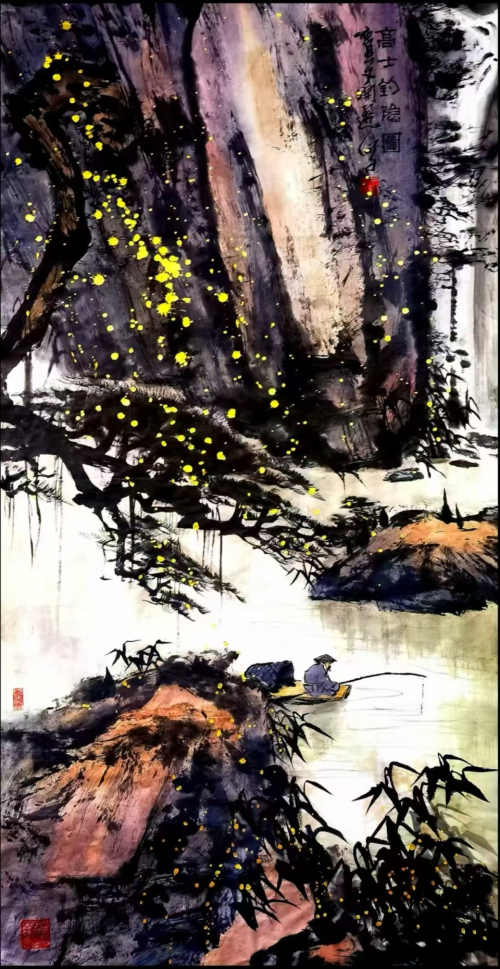其大写意山水画同样令人赞叹不已。他打破了传统山水画中远离观者的萧瑟之感,将自然山水转化为贴近人心的亲切画面。他集众家之长,形成了自然、简练、古拙、苍劲、浑厚、博大的画风。他的画作立意狂放不羁、大气磅礴,真正做到了人书合一、诗画一体、书印一脉。每一幅作品都像是一个独立的世界,观者置身其中,既能领略到山水的壮美,又能感受到画家内心的情感与思想。他的绘画不仅是对自然的描绘,更是对生活的感悟和对精神世界的追求。