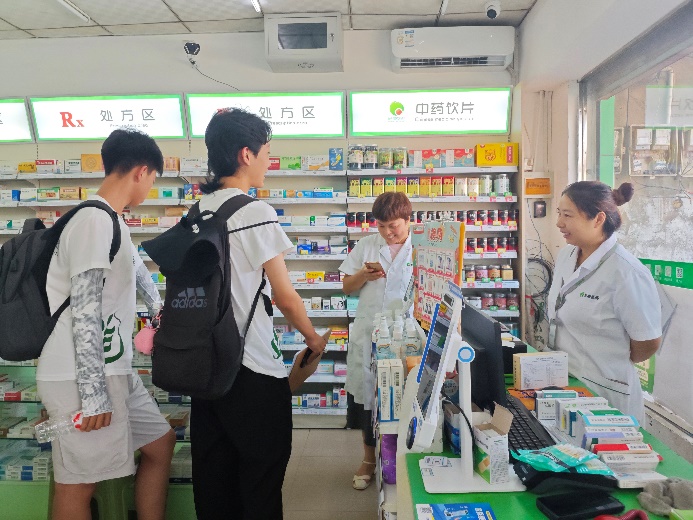 (实践团在某药店咨询药店负责人药品价格 乔诗彤供图)