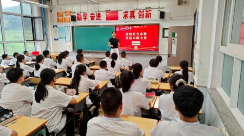 图为团队成员在瓦房店市实验中学进行宣讲