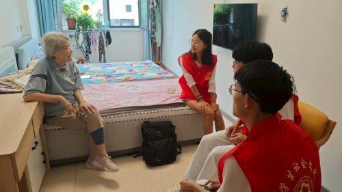 图为孙伟奶奶与团队成员亲切交流