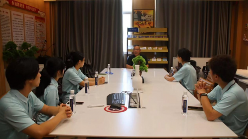 图为企业负责人与志愿者围绕“普通话与品牌推广”展开深入交流 罗缘欢 供图