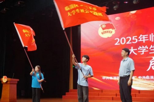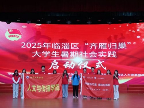 实践团受邀参加临淄区“齐雁归巢”大学生暑期社会实践活动启动仪式并作为“三下乡”暑期社会实践临淄行的团队代表接受授旗。