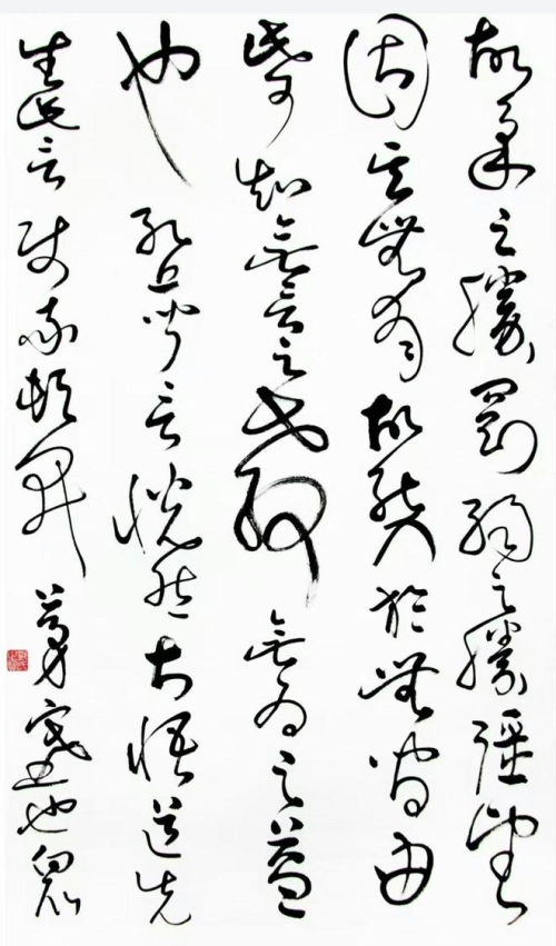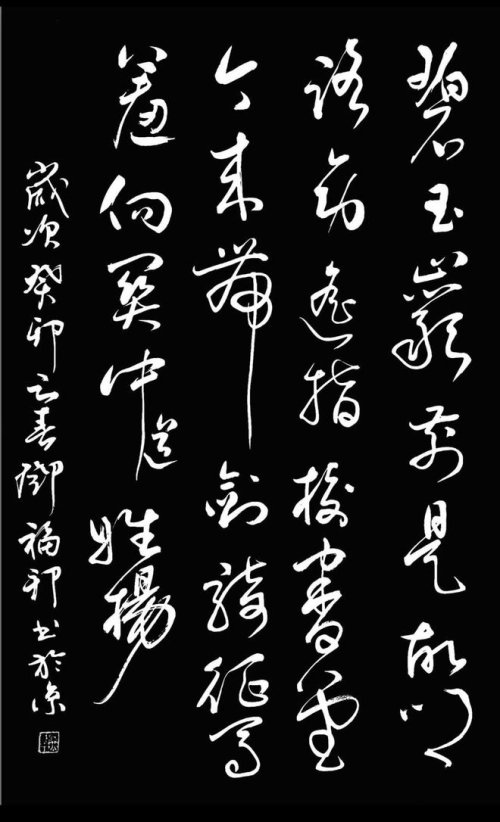 邓福邦的书法作品同样值得关注。他的草书笔画流畅飘逸,粗细变化明显,富有音乐般的节奏感;黑白对比鲜明,形成强烈的视觉冲击。体现了画家对书法本质的理解——不仅是文字的书写,更是心性的表达与道意的传递。