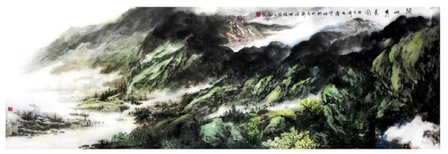 邓福邦的山水画作深深植根于中国绘画传统,却又展现出鲜明的个人风格。例如《秦山红韵图》等山水作品,展现了他对传统山水画的深刻理解与创新表达。以全景式构图呈现山峦连绵之势,色彩的巧妙运用创造出丰富的层次感,既具壮阔气象又不乏生活气息。体现出对山河文化的深刻理解。