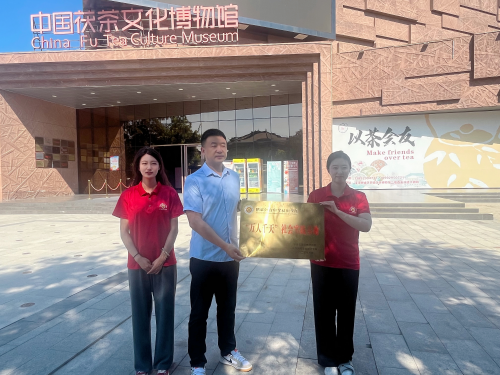 图为团队指导教师与中国茯茶文化博物馆馆长授牌合影