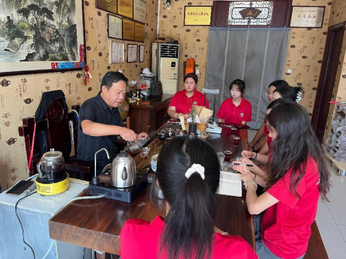 在茯茶镇的中国茯茶文化博物馆,团队成员跟随文博讲解员的脚步,走过丝绸之路上的神秘之茶——茯茶的前世今生。从汉唐时期“丝绸之路”上的驼铃声声,到明清两代“茶马交易”的繁荣盛景;从晋商“万里茶道”的开拓壮举,到泾阳匠人独创的“发花”技艺,每一件文物都在诉说着茯茶如何从边疆牧民的“生命之茶”,成长为连接东西方文明的“友谊之茶”。队员们驻足于1:1复刻的清代茶商票号前,透过斑驳的算盘与账本,仿佛看见先辈们以茶为媒、以信立世的商道智慧,在数字跃动间完成着跨越时空的精神对话。