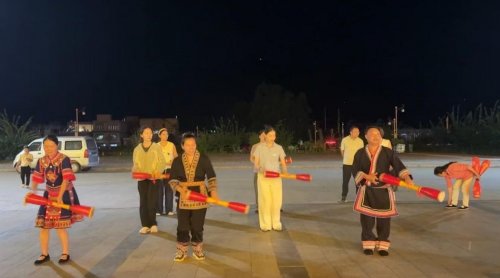 晚风轻拂瑶乡,鼓点唤醒乡愁。9月2日晚,江华瑶族自治县水口镇中国爱情小镇广场上灯火通明,一场别开生面的非遗文化学习活动在此温情上演。来自中南大学建筑与艺术学院舞蹈表演 2201 班的李婕彧、刘锦、杨睿琦三名同学,在伍彦谚教师的带领下,专程向瑶族非遗传承人盘山福老师拜师学艺,沉浸式体验国家级非物质文化遗产 —— 瑶族长鼓舞的独特魅力,共同学习《五福临门》经典鼓舞套路。