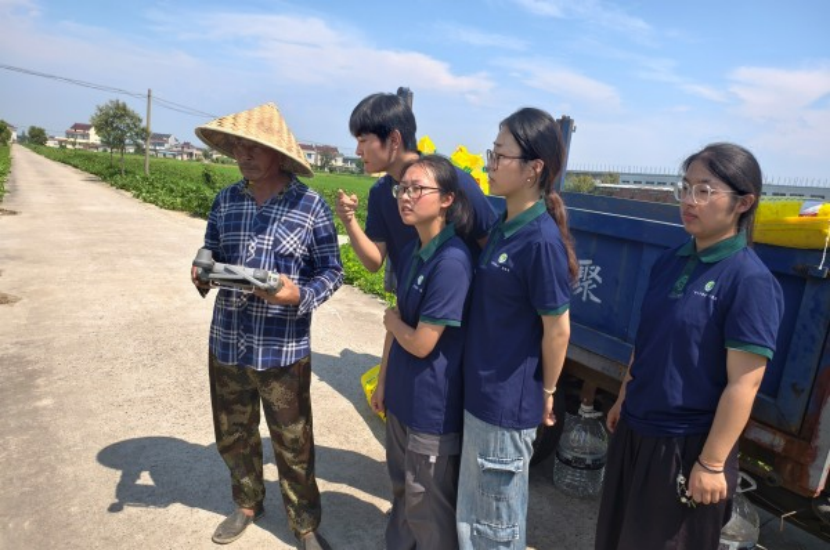 在泰州市姜堰区张甸镇连片的稻田上空,几架无人机平稳飞行、精准喷洒,勾勒出一幅科技与农业交织的现代农耕图景。8月28日至9月2日,江苏农牧科技职业学院“净土守粮安”实践团走进这里,开展了一场别开生面的农用无人机操作培训,让“飞防”技术真正“飞”入农户手中。