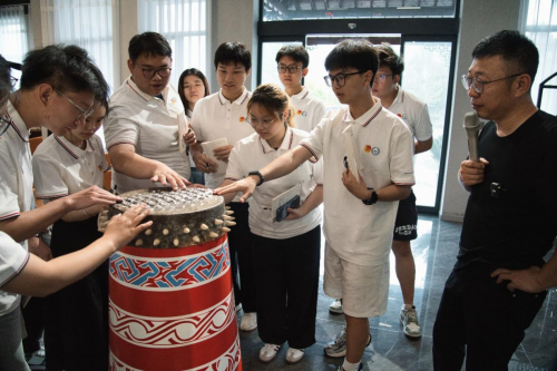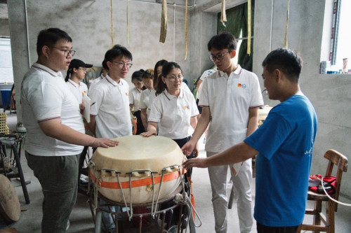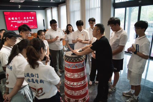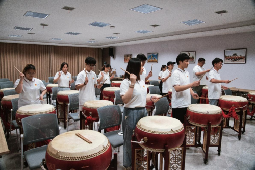 8月16日上午10时,上海外国语大学贤达经济人文学院国际交流学院“五福临门”青年实践团循着鼓声,抵达临汾市尧都区屯里镇——张勇的山西锣鼓艺术研究院。跟随着威风锣鼓非遗传承人张勇师傅一起“槌落如心跳,锣开似春雷”让胸腔里的青春与千年鼓韵同频共振,化作三晋大地滚烫的脉搏。