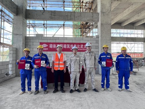 为落实特色党建工作部署,推进2025年“质量月”活动,提升工程施工质量,9月12日,中国化学南投运营公司在永州市(祁阳)表面处理产业园工程项目部项目A01#厂房三层成功举办砌体工程砌筑技能比武大赛。