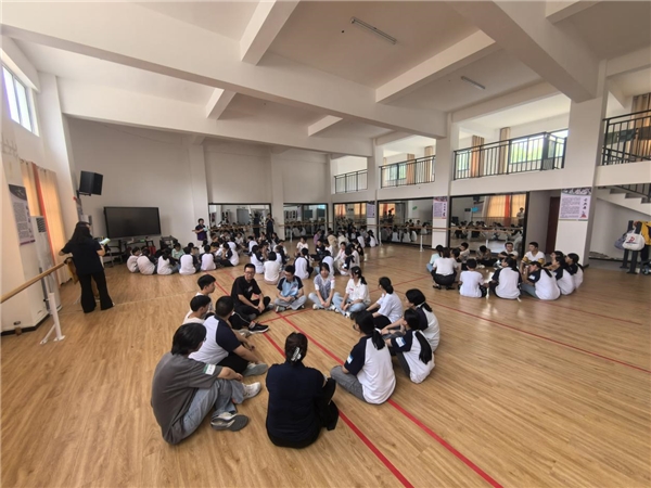 专题讲座结束后,群雁服务队于当日下午在学校体育馆组织高一新生学生开展户外团体实践活动。在唐可人狮姐的带领下,活动围绕 “协作力培养”“自信心建立” 设计多项团体游戏,在专业引导与安全保障下,学生们以小组为单位参与活动。过程中,原本严肃的活动氛围逐渐转变为轻松活跃的互动场景,学生们逐步放下拘谨,积极投入协作与交流,在完成任务的过程中收获快乐,增强团队意识与自我认同,深刻体会到社会公益力量带来的温暖与支持,进一步强化了对 “社会大家庭” 的归属感。