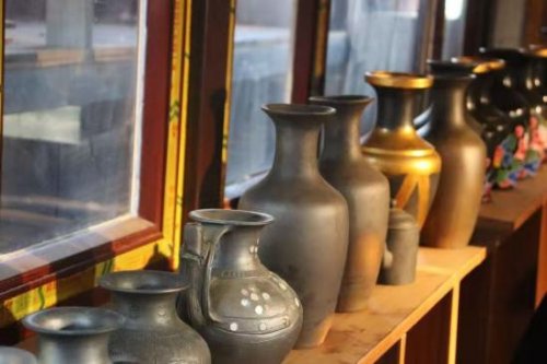 实践团与村民深入交流,挖掘黑陶深厚的文化内涵。村支书指着带镂空花纹的火盆解释:“九孔对应藏族九字真言,烟雾缭绕如同祈福。”更令学子们称奇的是“歪脖子”酥油茶罐设计——专为骑马者设计,颈部倾斜便于单手倒茶,底部沉稳确保颠簸不洒,体现了藏民高度的生活智慧。在村民访谈中,老人们分享了黑陶与日常生活的深刻联结。当地老人特别提到:“用黑陶煮茶,茶汤更醇厚,长期使用对身体有益。”这种代代相传的生活智慧,以及“器物会记住主人温度”的民间信仰,让实践团成员真切感受到黑陶不仅是生活用具,更是藏族文化传承的重要载体。