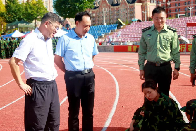 9月1日,贵州黔南科技学院党委书记范伟,党委副书记、校长潘欣共同来到军训现场,察看训练实况,勉励同学们通过军训磨砺意志、收获成长。各二级学院的党政领导班子及教师们也加入这场名为“温暖”的“接力赛”,先后深入本学院连队,为同学们鼓足士气。