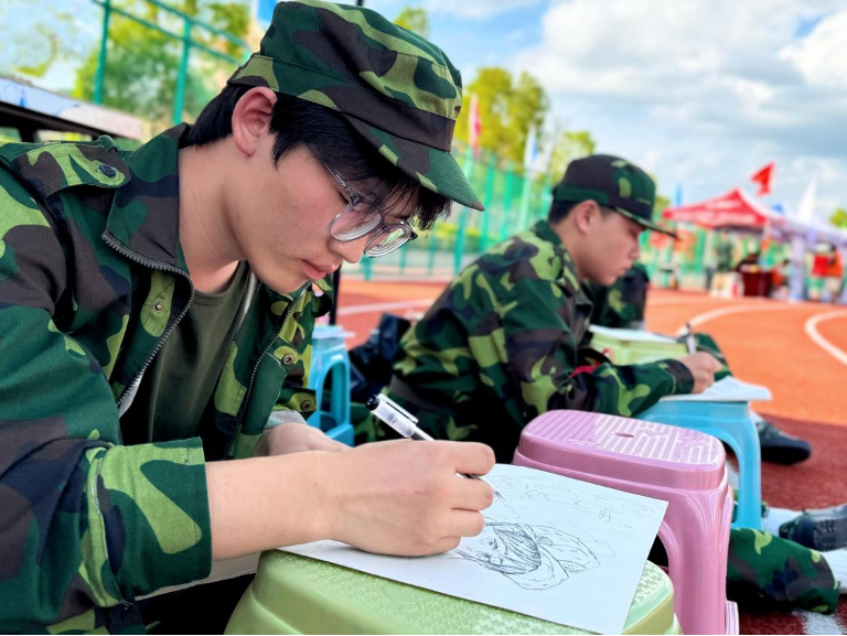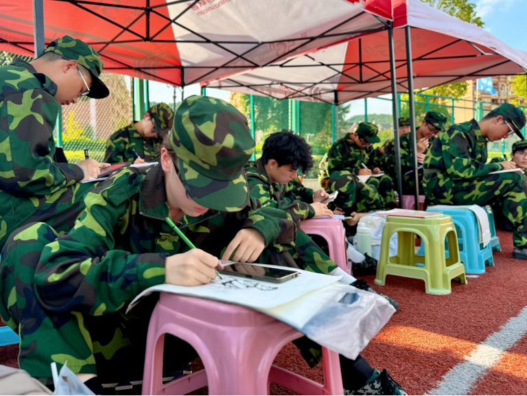 在这些队员的手中,破损的衣扣被重新钉牢,散开的线头被逐一收拢,训练场边的空瓶纸屑被及时清理,就连那些挥汗如雨、歌声嘹亮的瞬间,也被绘画组的同学用画笔悄然定格。