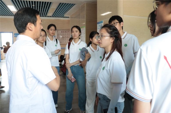 在镇中心卫生院,朱贤稳院长和付春梅副院长带着同学们参观各个科室,从内科、外科到中医科、精神康复科,基层医疗服务的不断完善令大家惊讶,但也看到了现实的局限:医护人员紧缺、村民健康意识薄弱、慢性病高发且控制率低……“原来,‘健康中国’的最后一公里,是要靠这些基层医生一步步走出来的。”团队成员林晨曦说道。