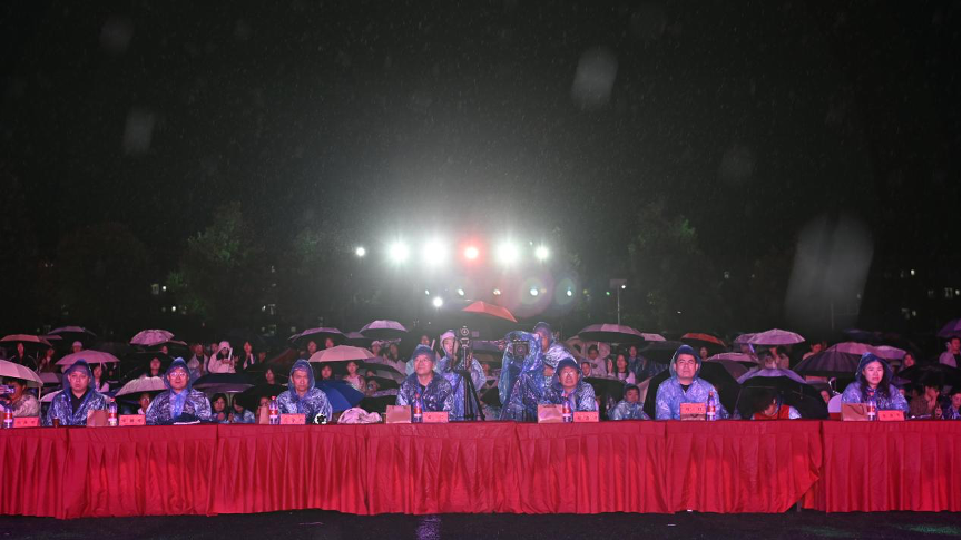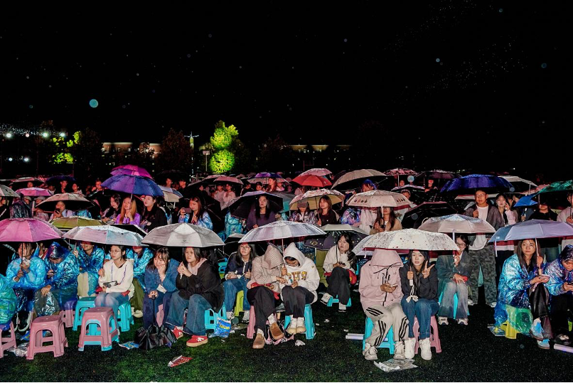 “演员们不顾大雨全力演出,我们坐在台下特别感动,雨水很冷,但心里特别暖。”贵州黔南科技学院2025级计算机科学与技术专业学生陈国杰说,尽管天气恶劣,舞台上同学们依旧动感十足、活力四射,让2025级新生深深感受到科技学院的热情与温度。