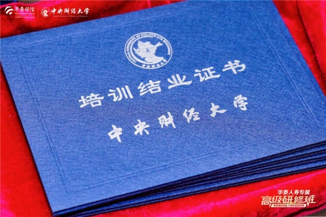 华泰人寿菁英营销员在完成研修课程并通过考核后,将获得由中央财经大学颁发的“培训结业证书”,从而以更加全面系统的金融养老知识,为客户提供定制化、专业化的养老规划。同时,学员们也将成为中央财经大学校友会成员,提升自身综合竞争实力。