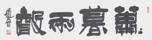 赵先生功力扎实深厚,又善采众家之长,楷隶行篆皆具风采,尤擅隶书。其书气势宏大,古朴奇宕,苍劲深厚,浑然如璞,读之顿生运斤成风,入木三分之感。从“赵隶”中,依稀可以看到篆书藏头护尾,内力含蓄的多变笔法,时而能窥到行书结体多姿,活泼有神的周致韵律,好像还能捕捉到草书无拘无束,使转交替的潇洒行笔。这正是赵先生将篆意、魏碑、行草等字体的不同大家笔意掰开揉碎,萃取精华,吸收营养,在自己苦心孤诣的手画心摹下形成的独特风格。这种独特风格,源于赵先生几十年师古不泥古、继往开新的不懈探索与追求,源于他闭关十五载,心无旁骛上下求索的中庸之思,更源于他不慕名利、不求闻达,逸静超脱的人生态度。