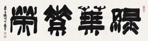 著名艺术理论家柯文辉先生曰:赵隶,消化遗产,取经用宏,方笔方构,中锋笃实,奉汉碑金梭,存古拙神采,参证篆楷,自见流妍,调节经纬,隐去斧痕,大幅作品时凝聚意象,小幅之作兼得巨幅奔腾。