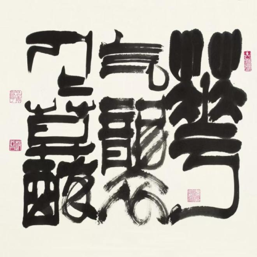 赵先生一直把苏东坡“端庄杂流丽,刚健含婀娜”的美学原则视为自己毕生的追求。他用笔劲挺豪放,纵横变化,笔有限而势无垠;章法布局新奇多变,沉郁顿挫间意态轩昂,动静结合中奇正相生,黑白起伏处吞吐大荒。其平笔如锥划沙,不结不滞,平实有力;圆转如折钗股,丰腴光滑,刚柔相济;留笔似屋漏痕,不漂不浮,如镌似刻;笔势重如高山坠石,苍劲深厚,力透纸背;变化如百川归海、惊蛇入草,妙悟不言。最让人叹为观止的是他结体的方圆并用,方中有圆,圆中带方,不方不圆,亦方亦圆,既有让读者眼前一亮独特韵味,又带给读者以无限的想象空间,在静水深流的表象下蕴含着大美的倾海之气,象外之象。