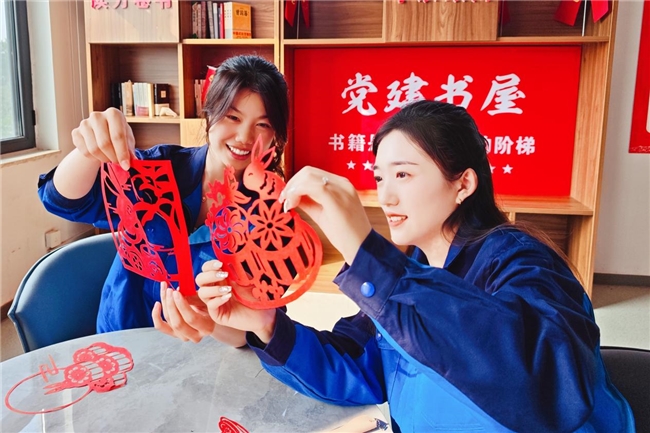 活动前,分部提前筹备红纸、剪刀、纹样模板等物资,邀请有剪纸经验的职工担任“小老师”,确保活动有序开展。活动中,职工积极参与,手持剪刀专注创作,玉兔捣药、圆月映桂、“中秋安康”等富有节日意蕴的图案在指尖逐渐成型。大家相互交流技巧、分享创作思路,现场洋溢着浓厚的节日氛围与团队温情。