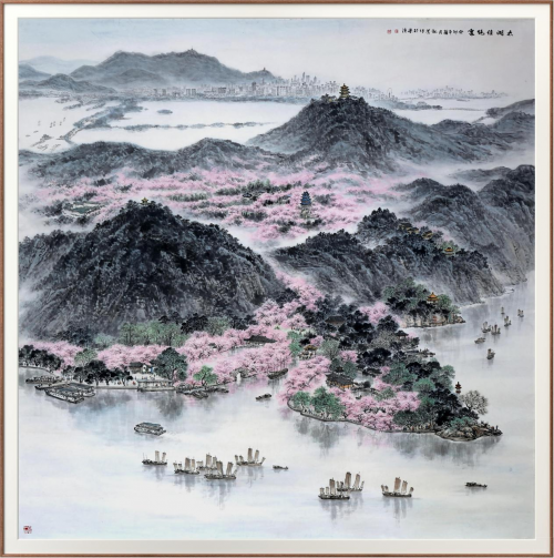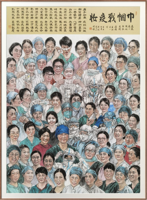 这份风采,更显在传承与传播的坚守中。作为江南大学教授、多所高校客座教授,他两获国家教学成果二等奖,将设计思维与国画技艺倾囊相授;退休后仍执掌高校院系,延续教育热忱。其画作不仅在国内多地展出,更走向日本、法国、意大利等国际舞台,《抗疫群英谱》《奥运奖牌榜》等系列作品,让国画成为记录时代、传递精神的载体;多部专业著作与教学范本的出版,更让他的艺术理念与教学经验得以长久传承。