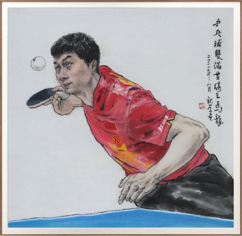 《乒乓球双满贯得主马龙》68x68cm,2021年